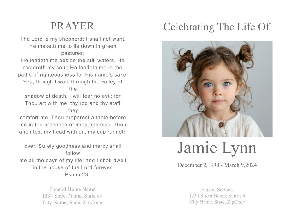 A funeral program typically includes several key components to honor the deceased and guide attendees through the service. The obituary provides a brief life summary, celebrating significant milestones and relationships. The order of service details the sequence of events, from musical selections to readings and eulogies. Expressions of thanks acknowledge those who have supported the family during their time of loss. Closing prayers offer solace and closure. Additionally, these programs often feature photos and tributes from family and friends, making each copy a heartfelt keepsake for all who attend.